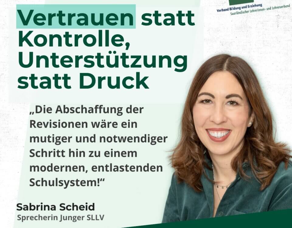 Saarlouis, 08.12.25 Pressemitteilung: Lehrkräfte brauchen Vertrauen, keine Dauerüberprüfung Die Arbeitsbedingungen von Lehrkräften unterscheiden sich in den Bundesländern teils erheblich – ein aktuelles Beispiel ist das Thema Revisionen, die dienstlichen Unterrichtsbesuche zur Leistungsbeurteilung. Thüringen geht derzeit neue Wege und hat die Revisionen vollständig abgeschafft. Im Saarland hingegen müssen Lehrkräfte nach Abschluss des Referendariats in den ersten drei Jahren jährlich revidiert werden; alle übrigen […]