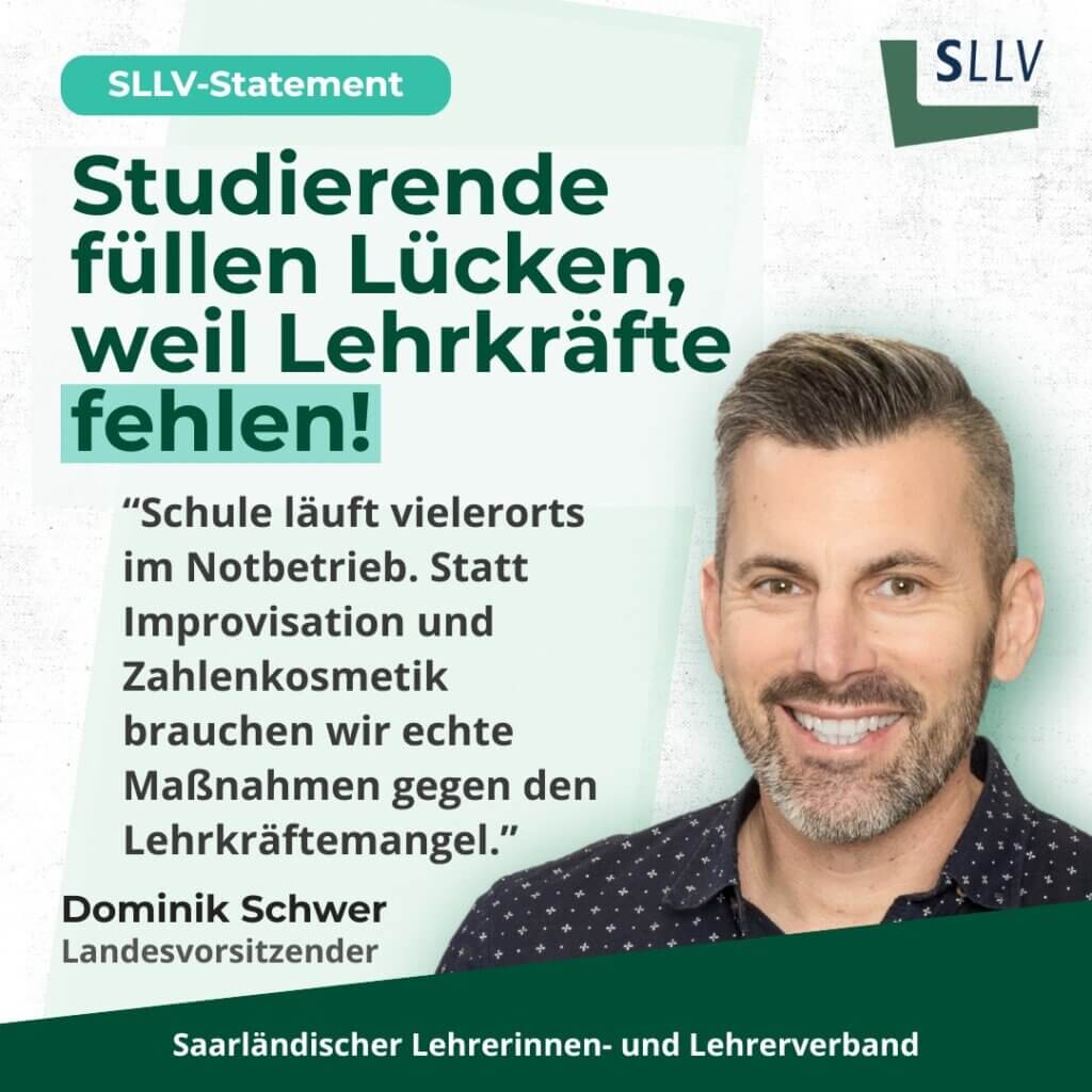 Pressemitteilung vom 05.11.25 Vom Hörsaal ins Klassenzimmer – Studierende tragen Verantwortung, weil Lehrkräfte fehlen Der Saarländische Lehrerinnen- und Lehrerverband (SLLV) zeigt sich besorgt über die im Saarländischen Rundfunk aufgezeigte Praxis, wonach im Saarland immer öfter Studierende die Aufgaben von ausgebildeten Lehrkräften übernehmen müssen. Der Verband warnt vor den Folgen dieser Entwicklung und kritisiert den damit verbundenenLehrkräftemangel. „Wir überlassen die Verantwortung für Kinder […]